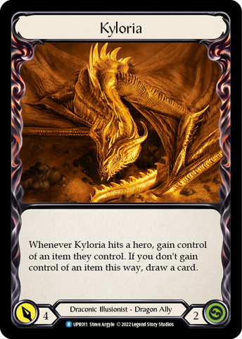 Whenever Kyloria attacks a hero, gain control of an item they control. If you don't gain control of an item this way, draw a card.