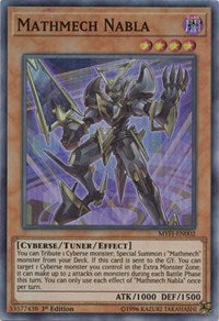 You can Tribute 1 Cyberse monster; Special Summon 1 "Mathmech" monster from your Deck. If this card is sent to the GY: You can target 1 Cyberse monster you control in the Extra Monster Zone; it can make up to 2 attacks on monsters during each Battle Phase this turn. You can only use each effect of "Mathmech Nabla" once per turn.